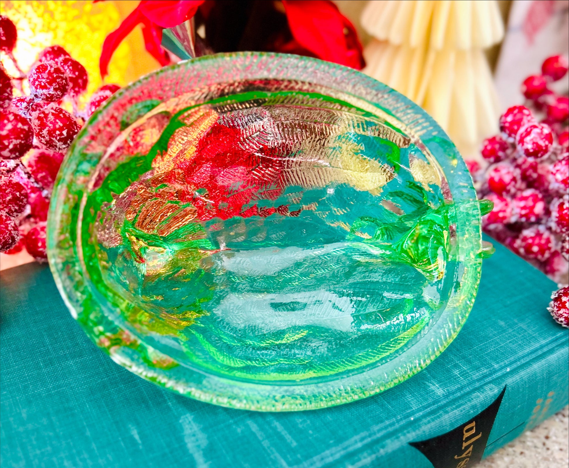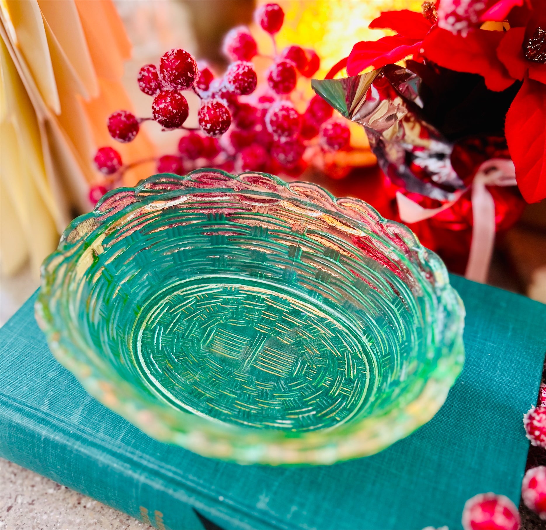 A distinguished addition to any curated collection, this vintage-style glass hen on nest showcases exceptional craftsmanship in rich lime green. The piece features precisely rendered feather detailing and a refined glossy surface that reflects light with remarkable luminosity, ensuring visual prominence in any setting. The coordinated nest bowl functions as both an aesthetic element and practical vessel, enhancing its versatility. Measuring 6 inches in length and 5 inches in height, this collectible piece suits diverse interior aesthetics—from farmhouse and cottage-core to contemporary eclectic spaces. Whether displayed on shelves, tables, or seasonal arrangements, it serves as a sophisticated accent that bridges vintage sensibility with modern design sensibilities. An excellent choice for discerning collectors or as a distinctive gift for design-conscious recipients.