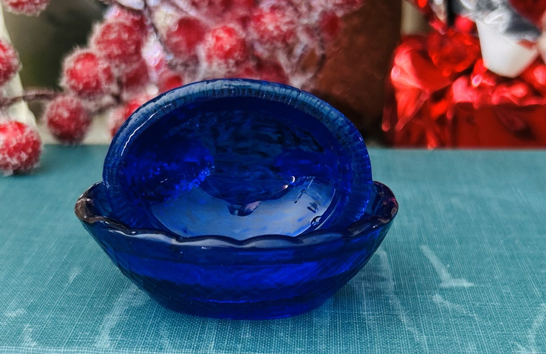 Vintage Glass Mini Hen on Nest Cobalt Blue